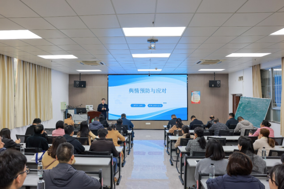 孙瑞以《舆情预防与应对》为题,结合高校工作实际,作了一场系统全面、深入浅出的专题报告,系统阐述了网络舆情作为社会情绪“晴雨表”的重要性和复杂性。他强调应科学辩证看待舆情,既要将其作为了解师生诉求、改进工作的重要渠道,也要坚决维护网络意识形态安全。报告分析了舆情生成演变的内在规律,指出影响舆情走向的关键因素,并提出了预防思路及应对原则,为高校舆情工作提供了清晰指导。