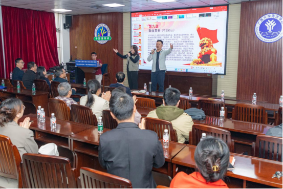 本次党课打破传统宣讲模式,以“音乐+理论+实践”的形式,构建“听—思—悟—行”四维沉浸式教育体系,将理论阐释与艺术鉴赏有机融合,让廉政教育更具感染力。课上,《唱支山歌给党听》《三大纪律八项注意》《公仆赞》等经典曲目轮番呈现,深情的演绎、激昂的旋律搭配贴合主题的视频画面,将抽象的廉政理念转化为可感可知的艺术体验。尤其是《保卫黄河》《瓦西里的故事》等承载着红色记忆的作品,让在场党员在重温经典中感悟初心使命,在艺术熏陶中强化廉洁自律意识,充分彰显了创新教育形式的良好成效。
